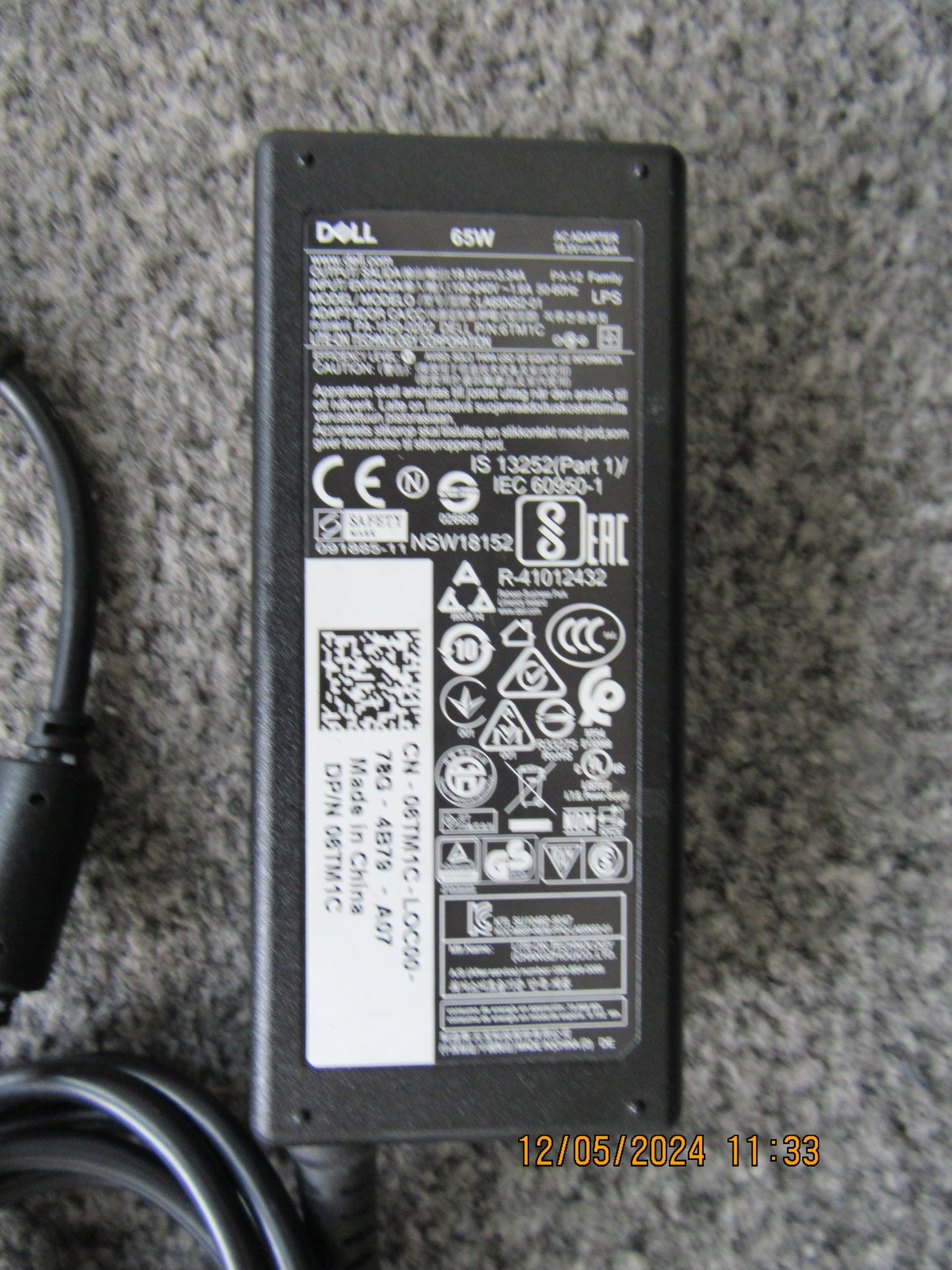 GENUINE Dell Laptop Charger 19.5V-3.34A, 65W (7.4mm Big Pin) with Power Lead