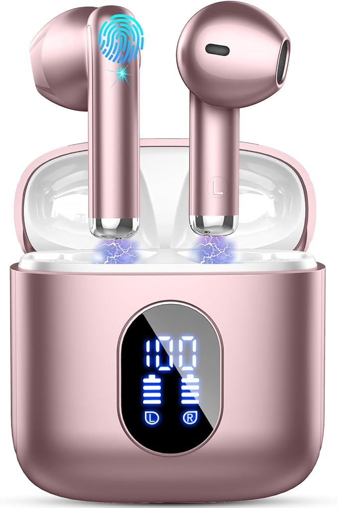 Wireless Earbuds, Bluetooth Headphones 2024 Wireless Headphones with Deep Bass, New Mini Bluetooth Earphones in Ear 4 ENC Mic, Noise Cancelling Earbuds 30H Bluetooth Earbuds USB-C, Rose Gold