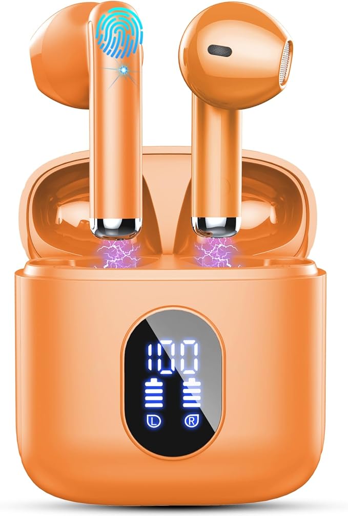 - Dual LED Display and Ultra-fast Type-C Charging: Features with a smart dual LED digital display, you can easily know the battery consumption on both in-ear headphones and the charging case so you can master the time to charge it. Fast charging via a Type-C interface takes only 1 hours to fully charge. The Bluetooth headset provides 6 hrs of playtime on a single charge, which can be extended to 30 hrs with the compact charging case, giving you all-day-long playing!